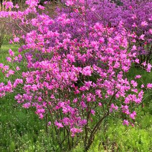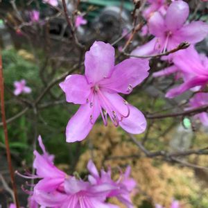 昨日、薄日が差したり青空も覗いたりしたので、大好きな場所へ🚗💨🏞️ 昨年は花付きが悪くて残念だった小間々の女王、トウゴクミツバツツジ。 木が大きいだけでは無く、姿も美しい💗 ゴヨウツツジも咲いていました。 朝まで山は雨だったようで花はしょんぼりでした。
