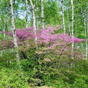 八千穂高原 白樺林の中に咲く トウゴクミツバツツジ 通称 ✨高原の貴婦人✨ 過去写真です。