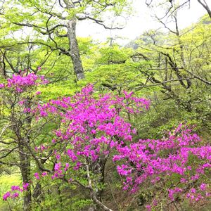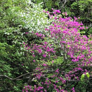 シロヤシオとトウゴクミツバツツジの共演。例年だとトウゴクミツバツツジの方が早く咲くようなので今年はラッキー。2018年5月19日