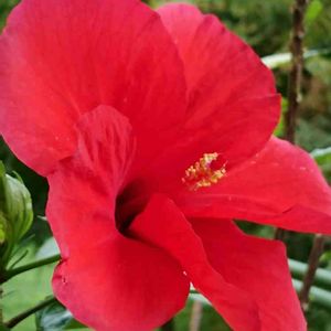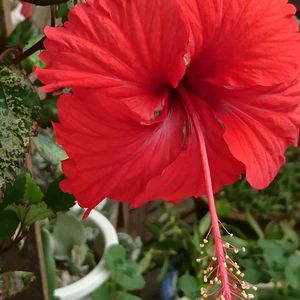 風がつよいです この赤のハイビスカス🌺は今年はさいごになるかな⁉️ 頑張って咲いてね🌺