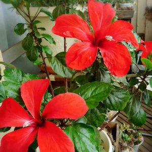 今日は蒸し暑いですね😅 ベランダのハイビスカス🌺が5個も咲いて明るい、枝があちこちに向いて全部のお花は🌺入れられない📲けど🙇