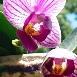 良い天気☀ 胡蝶蘭2つ咲いてくれました🌷 太陽に透かしてみました👀🎵