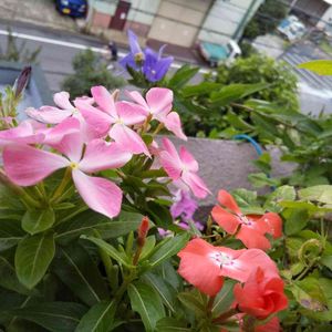 今日のお花 ニチニチソウ🏵️🌸 🌿夏みかんと…桃のときめき…と🏷が…ウフフ…😀🤗🙆🏻♀️🤭… 北側ベランダに…🏵️🌸🌿🍊🍑…🙆😀!
