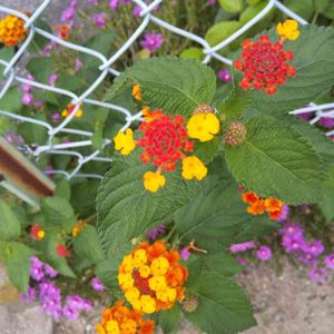公園のフェンスに… ランタナ🧡🏵️🌺💚 元気もらえるわ… 💛🏵️❤️🧡🏵️🌺💚🌿🤗🎶