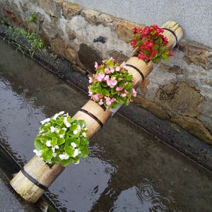 2021/08/20 花散歩…🚶🏼♀️🌸🤍💚🥀🚶🏼♀️💞🚶🏼♀️🎶… 旧多田街道沿いに… 流れる水路をうまく利用された…北村自治会さんの竹花壇… 今はベゴニアが… 増えてきてました…💮🌸🌺🌼🌿🍃… 癒やされる時間でした…🚶🏼♀️🎶💞🚶🏼♀️🌸💮🌼🌿… 雨の合間に…🙆🤗🎶💖🕺💃…