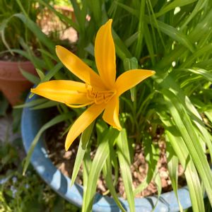 本日2投目の開花は、姫萱草です。 この子は、2010年に霧ケ峰に来ていた移動販売のおじさんに、ニッコウキスゲとダマされて買ったもの😡7年前、茅野市のお店で姫萱草と気が付きました。でも、この花を見せられると憎めないですね。💕丈夫で良い花です😄