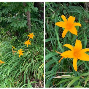 ヒメカンゾウ?と キスゲ🌼🌿 ←は今は花は終わっていて5月末の撮影ですが、キスゲに良く似たお花が早くに咲きます💞 →我が家ではかなり長く育てているキスゲ💛🧡 一日花ですが、次々に開花するのでずっと咲いている様に見えます💓