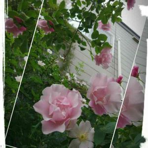 ◆いつもの箱庭 箱庭で一番過酷な場所で咲いたバラ... 何しろ強い塩気を含んだ南風が通り抜ける場所で、タフなバラ科の花木なら育つのではないかと抜擢!! 毎日のように南風に晒され、葉はかなり痛んでしまいましたが、何とか開花まで漕ぎつけました。 かなり頭デッカチの花で、開花すると花が垂れ下がってしまうので、どうせ垂れ下がって下向きで咲くなら、上の方で咲いてもらおうかと、玄関までのポーチの上に支柱(バーゴラ風)を作り、そこに絡ませています!! もしかしたら重みで折れてしまうかもしれませんが、それは誘引の仕方がズボラなせいと言うことです!!