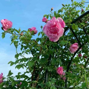 バラ (スパニッシュビューティー) ローズヒップを収穫したくて、昨年購入しました。 鉢植えで、オベリスク に誘引してます🤗