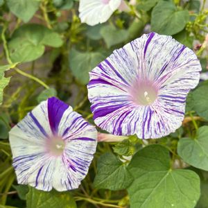 今日のお花*ムベ 『シロバナムベ』🤍 真っ白な👗を纏った妖精たちが 踊っているよう…♡(*⁰▿⁰*) ⬆️お花の真ん中、3つになっているの が雌花 ⬇️真ん中がシュッと分かれていないの が雄花 《スライドpic》 ②4月に咲いていました、よく見かける ムベのお花 ③8月、実へと変身💚 ④11月、熟して鮮やかな色に💜