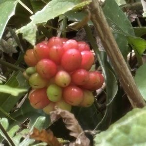 みーつけた👀❣️ 散歩道の美男カズラ。 今年はたった一つだけ。でも、根っこがしっかりしてるから、無くならないで実🔴をたくさんつけていって欲しいです。🟢→🟠→🔴になるまで観察だー🚶♀️〜🎶