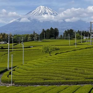 今日のお花 チャノキ ①② 昨日夕方のお茶畑 ③ すぐ近くのお茶屋さんの鯉のぼり🎏と新茶宣伝の幟 ④ 自然の茶の木と新芽🌱 ⑤ 10月のお茶の花 🏷️ 目に青葉〜2025(ユカリさん) チャノキ No.I で参加させて頂きます