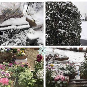 景色一変の愛知県北部 まだ降ってます 雪の多いところから見れば どうってことはないけど 新幹線、電車、遅れてます もうすぐ春だと思っていた花たち 寒そう❄️さすがにウィンティは 中に入れた😅