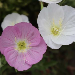 今年初めて越年した月見草 最初の開花は昨夕から始まって夜中に開花 雨の影響で受粉できなかったようでまだ白いままでした ピンク色に染まって萎む姿は、またのお楽しみ