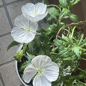 昨年妹にもらったツキミソウの株 次々に花が咲いてます❣️ まだ蕾もいっぱい🌕 初め真っ白で、少しづつピンク色に 変わっていく不思議なお花