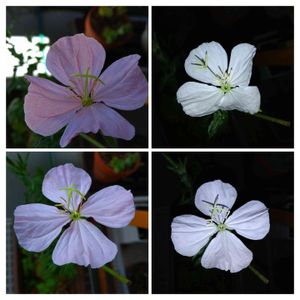月見草🩷 今朝、左上は4時38分、後の花びらはすべて6時40分です。😁 ピンク色の花びら、角度を変えて撮り、コラージュしました。🥰 少し、花びらがしぼんできたのが、真横から見ると分かります。🥰 並べ方は適当です。🤣😁