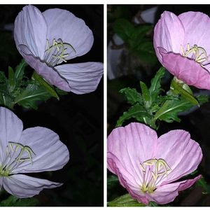 月見草🤍🩷 左、2023年6月18日0時08分です。真夜中ピンク色になってます。 右、同4時09分です。ピンク色が濃くなりました。🩷