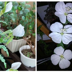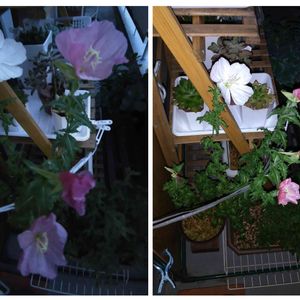 月見草🥰 3つのお花が終わって、左にまた白いお花が咲きました。 左、6月22日19時18分。 右、同22時50分。🤍
