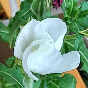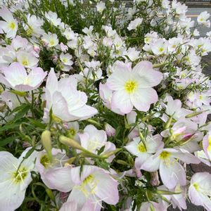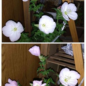 月見草🤍 19時25分。 風🍃避けのためにフラワースタンドのふちのカドッコに移動しました。😁