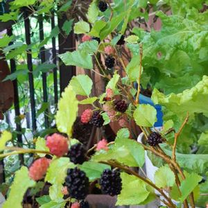 去年挿し木した桑の木にも沢山実が付いたが雨で沢山落ちたから慌てて雨当たらない方に移動!ベランダで!
