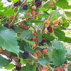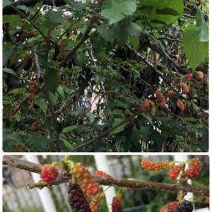 今朝の散歩🚶から 隣家の生垣に実る桑の実 子供👦の頃口の回りを紫色にして食べていました😋 最近はいろんな桑の木を植えて桑の実狩りをさせている観光農園があるそうです。