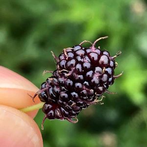 今年2度目の🌱桑の実🌱です。 1度目の実は沢山成りましたが、赤い実から茶色ぽくなり熟れないで乾燥して食べられませんでした。(>_<) 今回のは数は少ないですけど、とても甘くまるで熟したブルーベリー見たいな味でした。(о´∀`о)