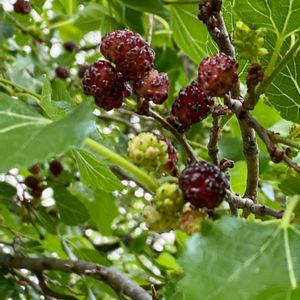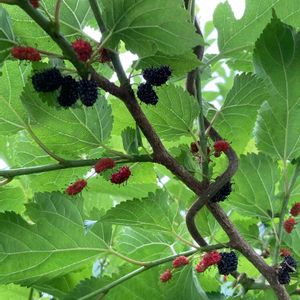✨桑の実🌿(マルベリー) 小鳥が良く集まり賑やかな木〜🕊 🌳大きな桑の木があって小鳥たちのお食事処。ある日切り倒され寂しく思ってたら道を挟んで桑の幼木がスクスク育ってるのを👀見て嬉しかった事を思い出しました〜🌱💕 出会えたら😋美味しー摘んで食べマス〜🎶 今では栄養価で注目👀♡