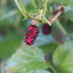桑の実、第二段が着き始めました。凍らせて毎朝ヨーグルトに混ぜると美味しいです。