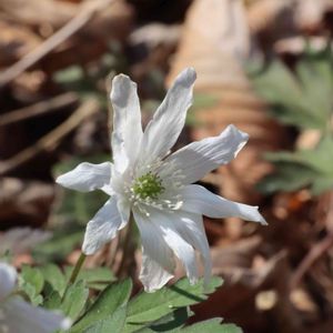 またまた、「春のはかない草花」スプリングエフェメラル キクザキイチゲ(菊咲一華) 早春に咲き、白か紫色の花が1個つき、花弁はなく、ガク片が花弁状に見える。 茎葉は3枚輪生し、深い切れ込みになる。ニリンソウ、カタクリと並び大きな群落を形成する。 花びらがが菊のような形で咲き、1本の茎に1輪をつけるので、菊咲一華と書く。 別名は、菊咲一輪草(キクザキイチリンソウ) 天気が悪ければ花は開かず、首を垂れる。 良く似た仲間にアズマイチゲ(東一華)がある アズマイチゲの葉は、先が丸く細かく切れ込まず、やや下に垂れている。 また、花の下にある茎に毛があればキクザキイチゲ、なければアズマイチゲ。