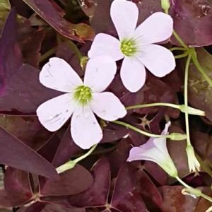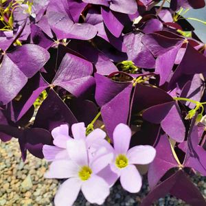 オキザリス トライアングラリス 紫🟣の葉に 薄いピンクの小さな花が可憐🌸