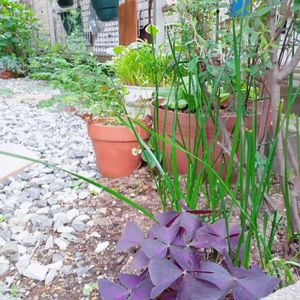 花壇の色々な場所からトライアングラリスが育ち花が咲き始めました!! 濃い紫色の大きな葉はインパクトがある見た目なので花壇に映えます。 1苗あれば、沢山増えるのでオススメです☺
