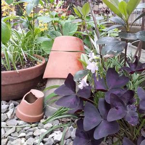 オキザリス トライアングラリス💕 紫の葉っぱ💜に、優しいピンクのお花🌸 もう これは、放ったらかしで 生えてきて お花🌸 咲かせてくれるので、優秀な子💓 何も お世話してないので、この子に 申し訳ない ..... 必ず 毎年、このプランターに 生えてくるし、また 近くに 飛ばしたりして、 増えて行ってます、華奢そう〜に 見えるのに 超丈夫💖なんですよね〜‼️👍