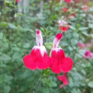 チェリーセージ ホットリップス 庭は花数が少なくなりましたが、コチラは旺盛に咲いてくれてます🤗