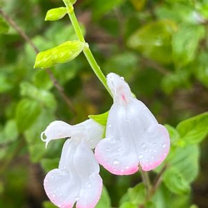 🍒チェリーセージ🍒 朝から☔️降ったりやんだりの スッキリしない1日でした🌧 ほんのりピンクに ちっちゃな雨粒ෆ⸒⸒ かわいく咲いていました(❁ᴗ͈ˬᴗ͈)”