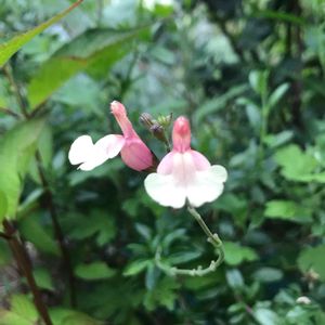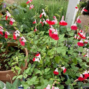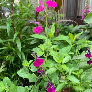 セージ ホットリップス 雪国なので去年から室内で冬越しさせた鉢植えが咲きました😊