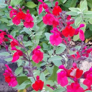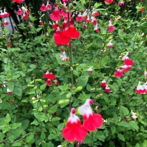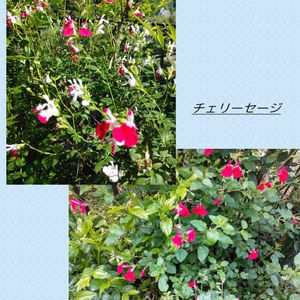 チェリーセージ 赤白や赤い花が可愛い 暑くなってくると、白い花が多くなると思う❤️逆ですー暑いと、赤い様です