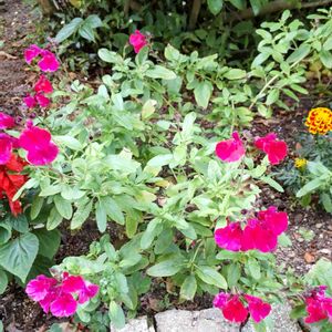 今日もお疲れさまです😌✨ チェリーセージさん 葉も花もいい香りがします☺ 右側と左側の通路に植えています 真赤なこと白と赤のツートンカラーのこ 今年はぼうぼうに生えています☺ 早春に、4組挿し木したこが根づいたので お嫁入したけど どんな花が咲くはお楽しみ笑笑