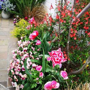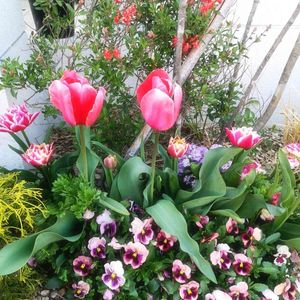 ✨シンボルツリー周辺✨ チューリップが咲き、一段とにぎやかになってます。 チューリップが咲いたらストックが隠れ気味に…。