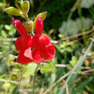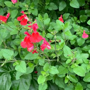 チェリーセージ🌿 ご近所さんのおうちのチェリーセージです。 可愛らしい赤いお花❤️ 2年くらい前にはうちのもお花を咲かせていましたが、今は葉っぱだけ🌱 葉っぱはミントの香りがします🌿庭にあると他の植物にも虫を寄せ付けないとか😙 あらあら雨がひどくなってきました☔️ お仕事帰りの方などお気をつけてお帰り下さいね♪