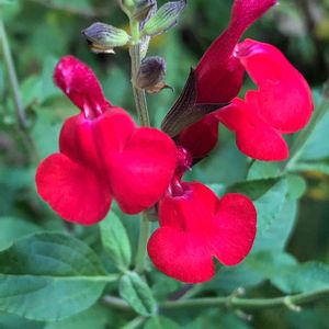 おはようございます(○︎´∀︎`)ノ💕 いつもありがとう•*¨*•.¸¸♬︎ 🍒チェリーセージ ホットリップス🍒 寄り添って咲いていました❤️ (●︎´∀︎`)人(´∀︎`○︎)💖 今週もよろしくお願い致します🎵