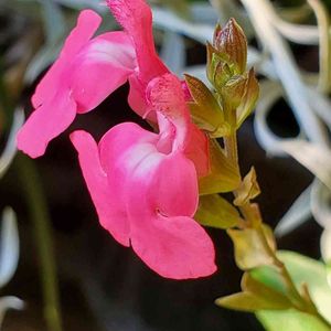 🤓今日のお花 サルビア・ミクロフィラ チェリーセージ🍒 または、 ホットリップス👄 の方がお馴染みかなぁ〜 モミモミして香りを〜楽しみたいけどー それは可哀想で、結局出来てませんデス✨