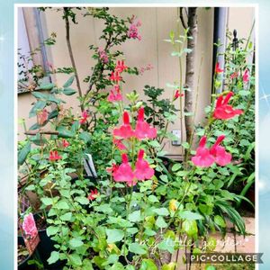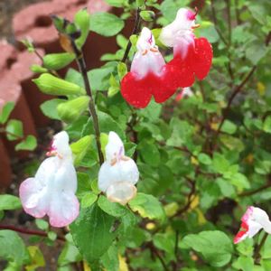 こんばんは😃🌃 チェリーセージ🍒 なぜか、白が混じってきました。🤔