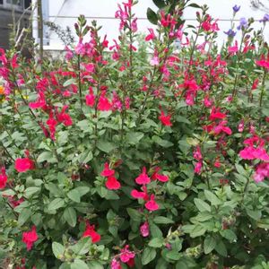 チェリーセイジ ホットリップス このホットリップス 気温が低いと白の割合が多く 気温が高いと赤の割合が多くなります 最近寒暖差が大きいので 1つの株からいろんなタイプの花が 咲いていて可愛い💕です 今日も良い一日でありますように🍀