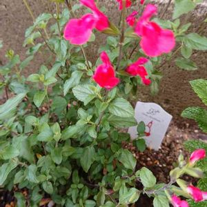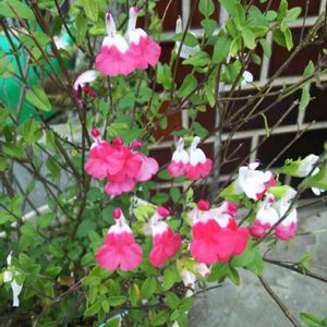 4/25(木)⑩ チェリーセージ初めて見る色合いです。 チェリーセージ・ピナフォアストロベリーのようです。 違っていたら教えてください。可愛らしいですね~🎶