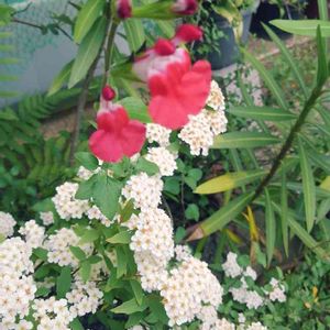 コデマリの白とチェリーセージの赤 紅白 で 縁起が良さげ?( *´艸`)