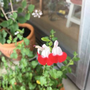 チェリーセージ🍒ホットリップス💋が、今日は寒くて真っ白に!