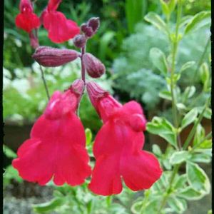 チェリーセージ。 深い赤が良い( ˊᵕˋ )蕾の色も良い( ˊᵕˋ* )