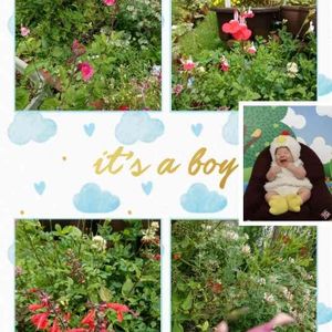 チェリーセージ ホットリップ ローズ アプリコット サルビア コクネシア コーラルニンフ 孫っちの百日の写真です😃💕