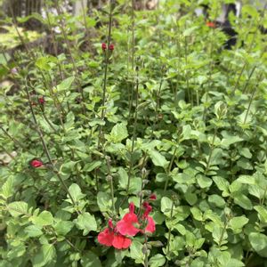 今年初のチェリーセージ開花 白地に赤い縁取りだったけど 全部真っ赤になってる😅