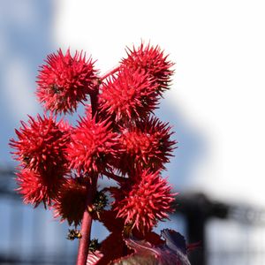 トウゴマ(ヒマ) 友人宅の近くで赤いトゲトゲの植物を見つけました。 初めてさんです。一体何だ? 調べてみたら、「トウゴマ」。 種からはひまし油がとれるそうです。